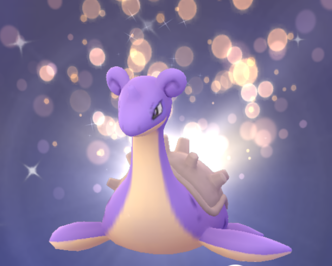 Despite not playing pokemon, I still have the reaction of "oh, it's lapras!", which is only probably correct identification of your nice purple dinosaur. :)