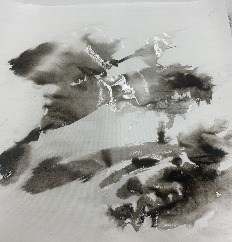 Today in brush-painting class, we worked on pareidolia, looking at random jumbles of ink and loosing the pattern-hungry human brain to see something meaningful that can be developed. I really like a lot of art made this way; you don't tell the ink what to do, you move with it, like aikido.